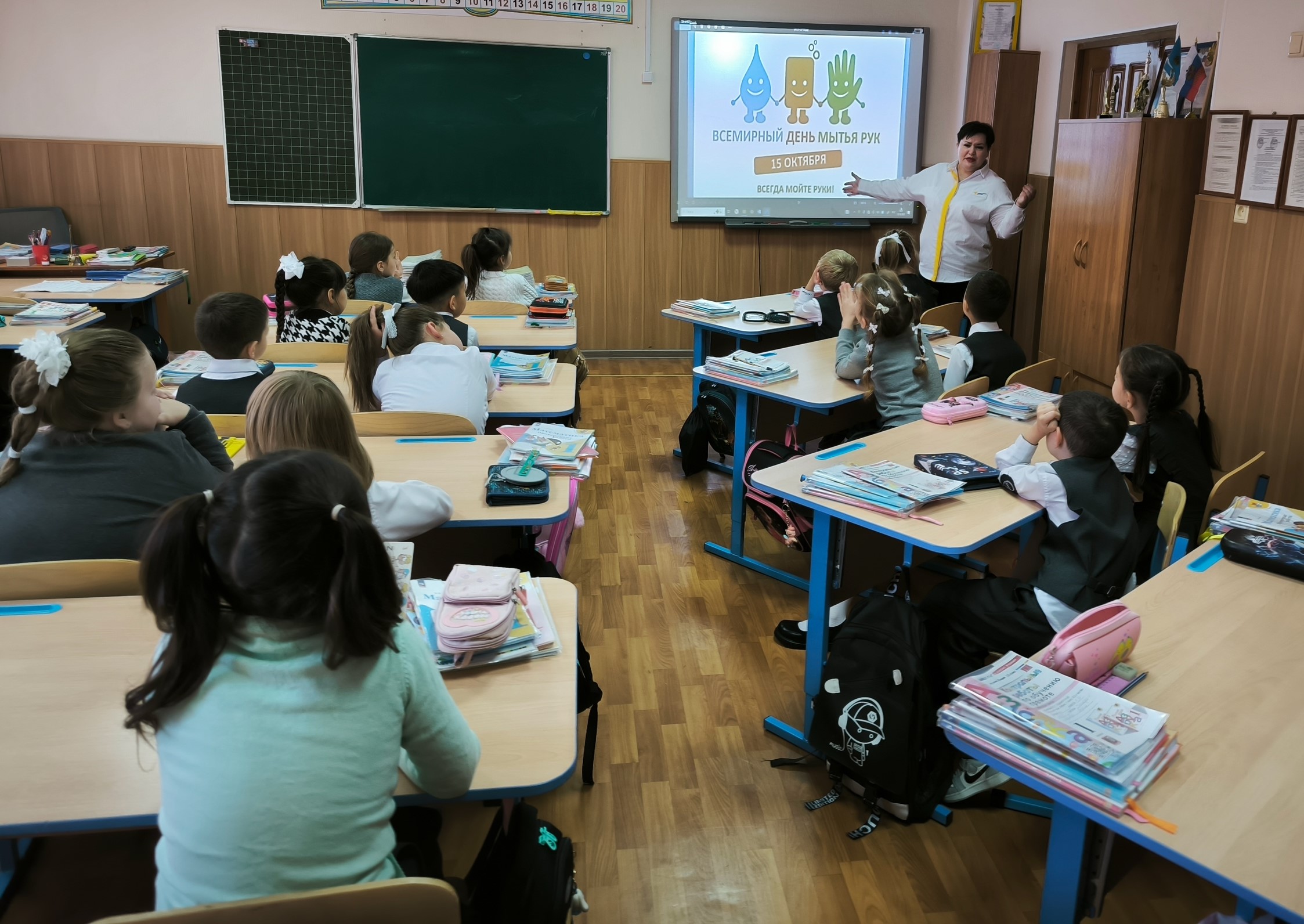 Учащиеся младших классов также узнали об этом дне, посмотрели мультфильм, поговорили о правилах мытья руки, нарисовали символы этого дня. Старшие наставники провели викторины и игры, где показали, как правильно мыть руки и для чего это нужно делать. И конечно, перед едой в столовой мыли руки по правилам!