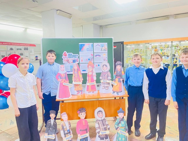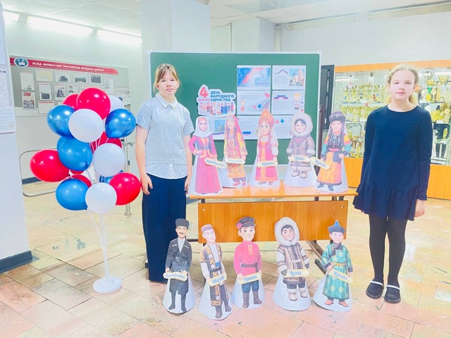 Чтобы лучше объяснить младшим школьникам смысл и историю праздника "День народного единства" на каникулах в библиотеке лицея в рамках мастер- класса " В единстве сила" ребята из сообщества " Юные краеведы" изготовили кукол в национальных костюмах народов, проживающих в России и оформили композицию в фойе лицея.