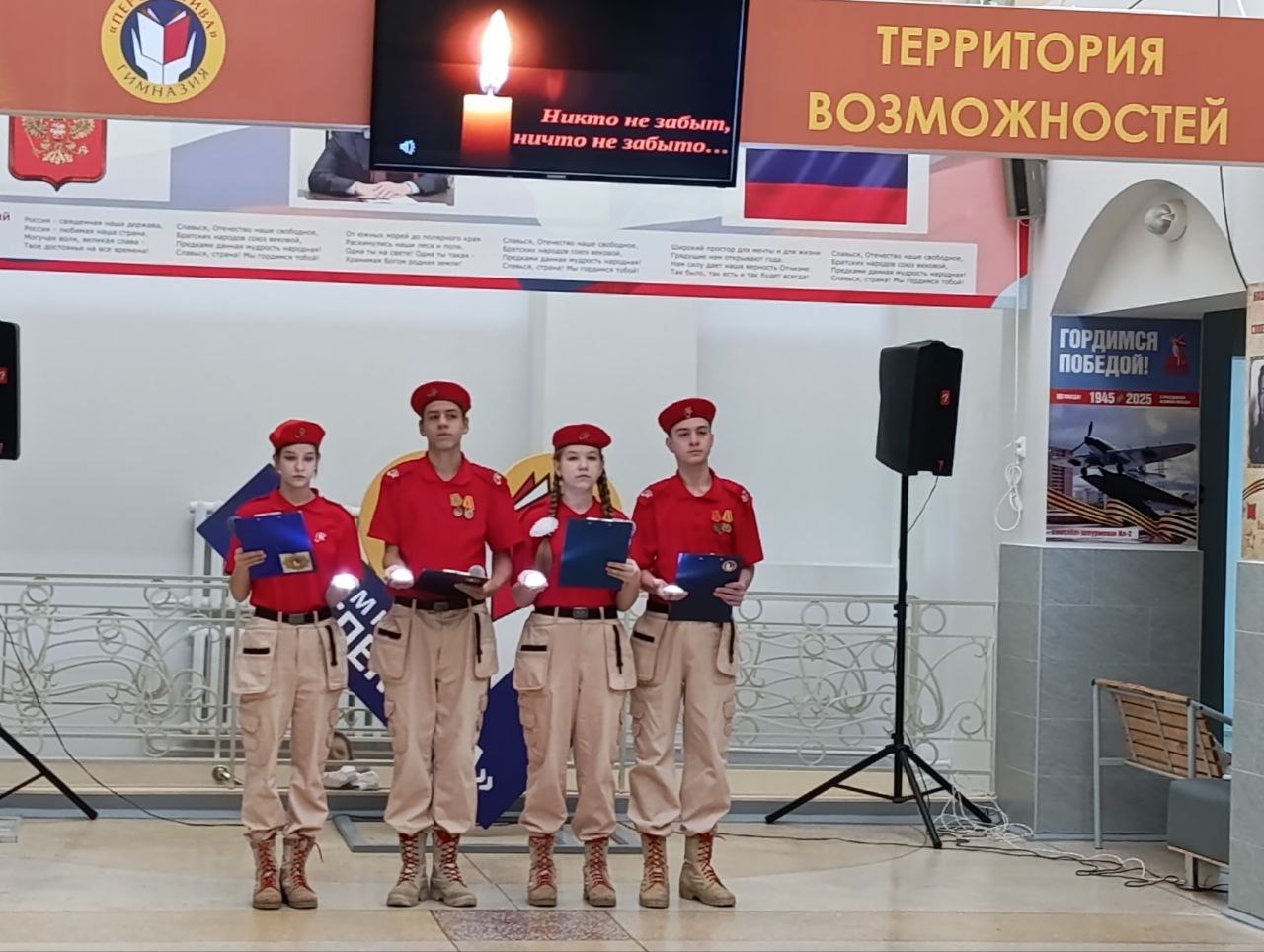 26 января в гимназии «Перспектива» прошла общешкольная линейка для учащихся 8-11 классов, посвященная Дню памяти жертв Холокоста. В фойе гимназии учащиеся 11х классов рассказали собравшимся о страшных страницах мировой истории. Зачитывались отрывки из дневников жертв массового уничтожения, а также истории спасения. На экране были показаны сухие цифры статистики. Линейка закончилась минутой молчания в память о жертвах Холокоста.