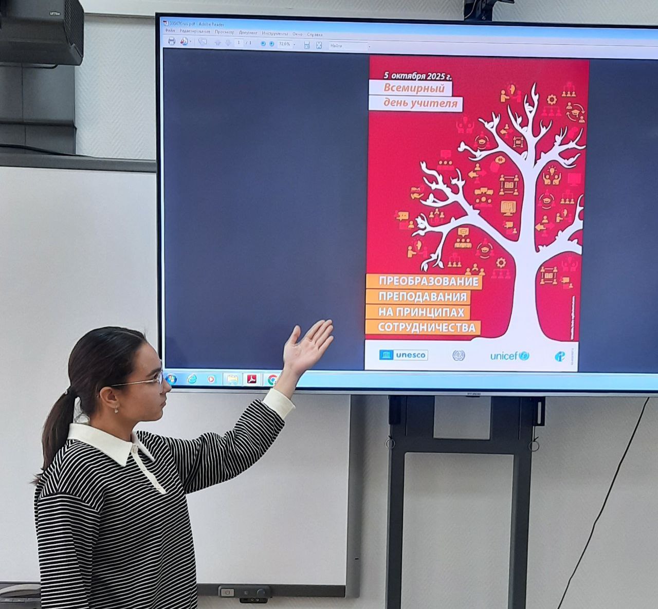 Тема Всемирного дня учителя в этом году — «Переосмысление преподавания как профессии, основанной на сотрудничестве». Это позволяет подчеркнуть преобразующий потенциал сотрудничества для учителей, школ и систем образования. Восприятие учительского труда как коллективного по своей сути крайне необходимо для развития всего образовательного процесса и профессиональной самореализации педагогов. Такое новое видение должно быть поддержано политическими решениями, практикой и условиями, где в приоритете стоят взаимная поддержка, обмен знаниями и совместная ответственность.