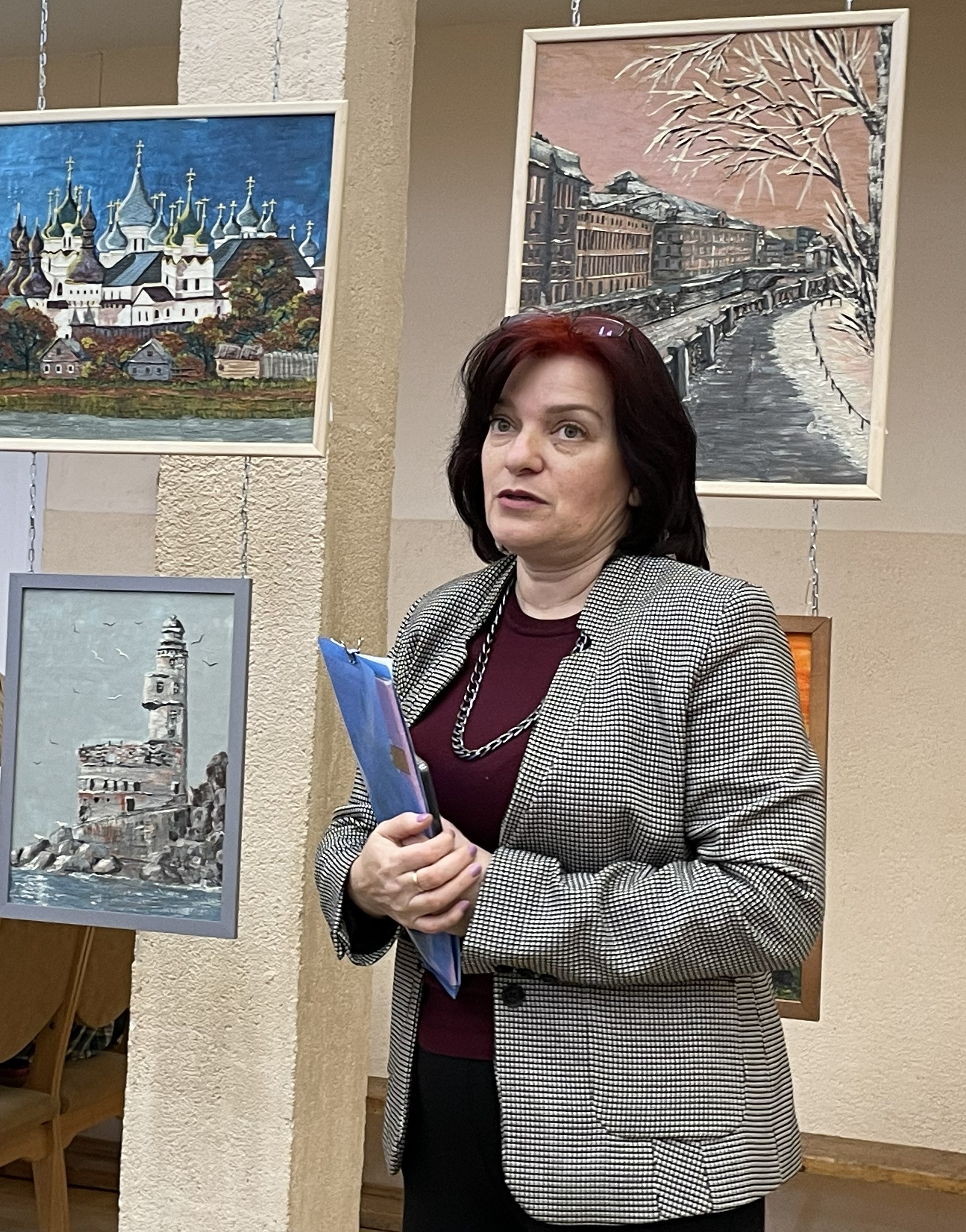 - В актовом зале школы расположилась персональная выставка картин «Россия вдохновляет». О поражающей воображение технике пластилиновой живописи гостям рассказывал автор работ и руководитель ОДОД ГБОУ школы № 641 Санкт-Петербурга Листова Анико Гурамовна.