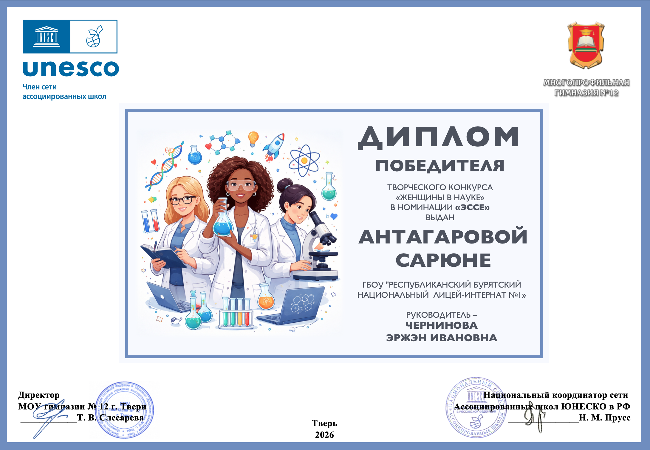 В марте МОУ многопрофильная гимназия №12 г. Твери стала организатором IV Всероссийского творческого конкурса «Женщины в науке», в котором приняли участие школы САШ ЮНЕСКО из самых разных уголков нашей необъятной страны: Самара, Бурятия, Курск, Саратов, Санкт-Петербург, Москва и Подмосковье и, конечно, Тверь.