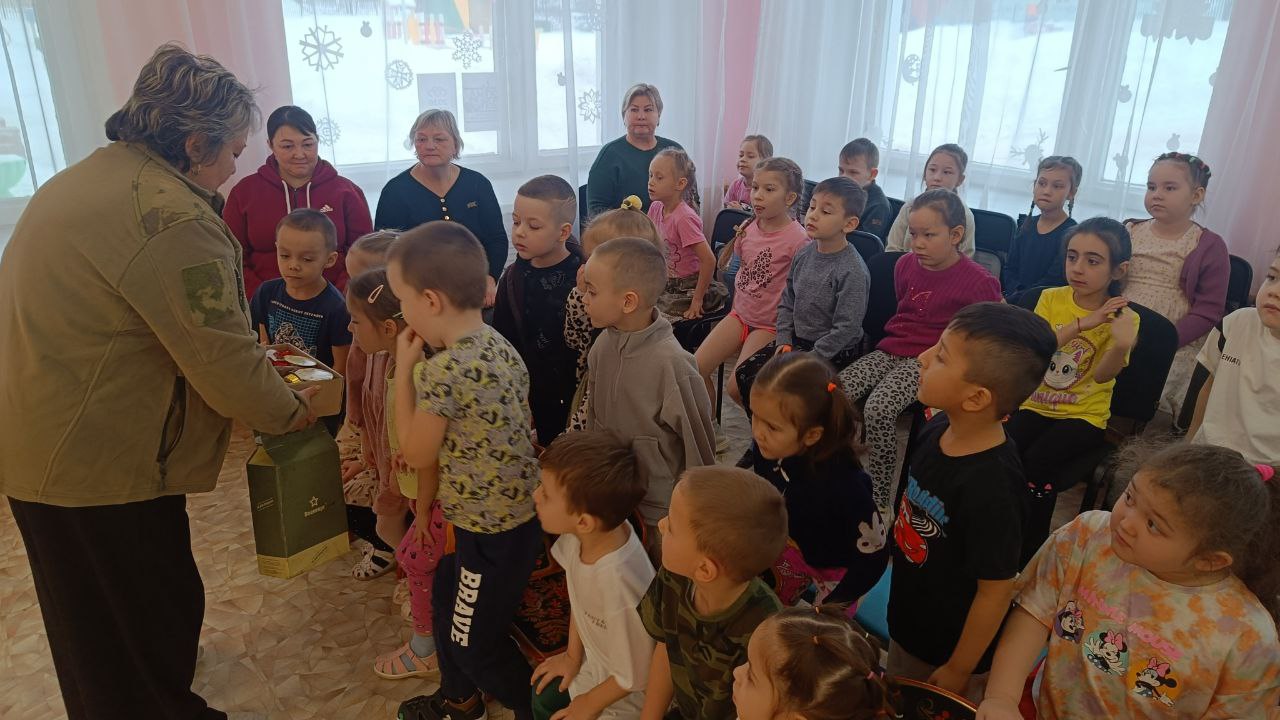 Наш детский сад посетили представители волонтерской группы «Оберег». Ребятам рассказали о плетении маскировочных сетей, как их используют, о важности маскировки для безопасности наших бойцов.
