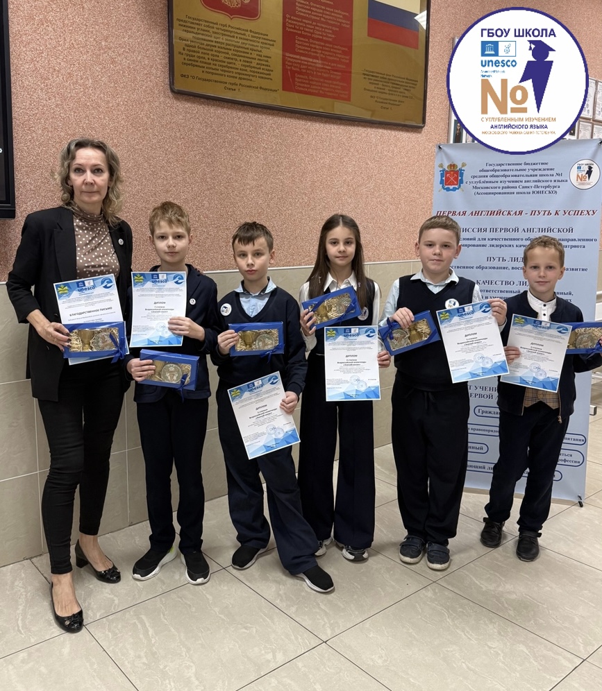 При подведении итогов Олимпиады дипломом II степени была удостоена команда «Звёздочки 1-ой английской». Участие приняли ученики 3 «А» класса, Воронин Артём, Зиновьев Максим, Каракетова Елена, Павлов Иван, Прохоров Матвей, которые успешно справились со всеми заданиями при сопровождении своего учителя, Зайцевой Оксаны Валерьевны.