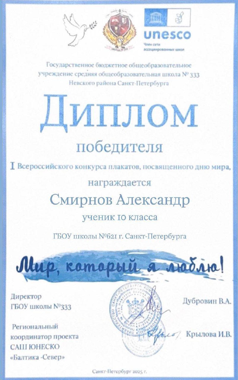 Всероссийский конкурс плакатов проводился ГБОУ школой №333 Невского района с целью привлечения внимания подрастающего поколения к проблеме сохранения мира на планете, транслирования ориентиров добра и благожелательности по отношению к окружающим.