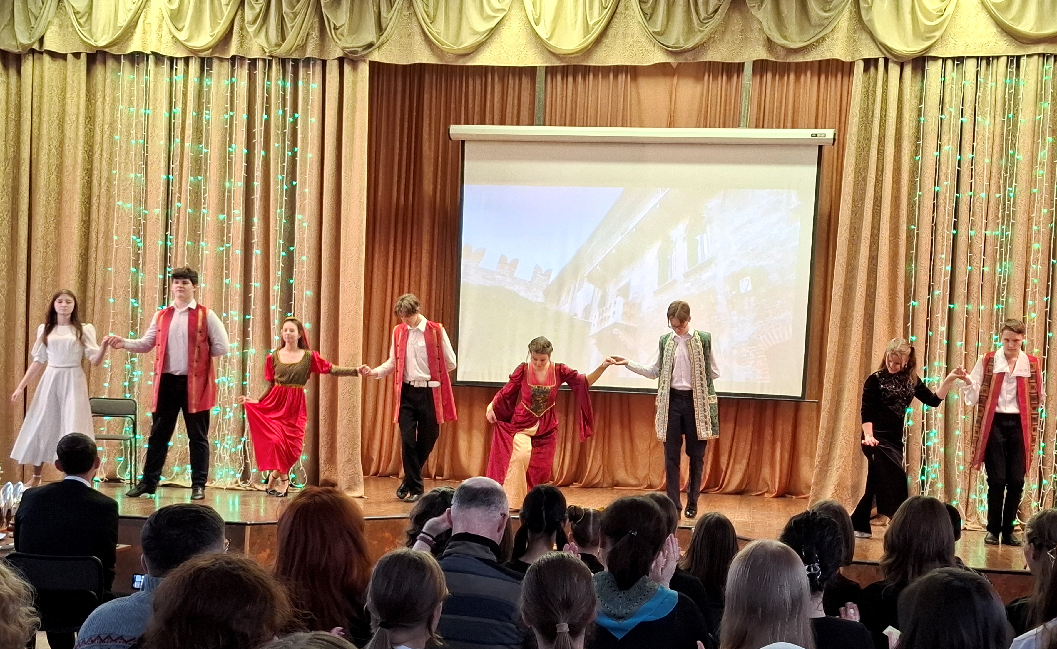 По традиции конкурс открыло выступление Клуба джентльменов на английском языке (руководитель Е.А.Королева). Любовь - что может быть прекраснее? Учащиеся 9-х классов напомнили, что укрощать строптивых и непокорных можно в любом возрасте, как завещал великий Уильям Шекспир! Тема любви, наступающей весны стала главной темой конкурса. Жюри предстояло оценить выступления 13 участников с 3 по 11 класс в жанрах: игра на фортепиано, вокал (на русском, английском и французском языках) и танец. Над подготовкой номеров и организацией конкурса работала Е.Н.Горелова - руководитель Евроклуба «Мир без границ», яркий и очень творческий человек. Равнодушных в зале не было, каждое выступление одноклассники, родители, выпускники, учителя поддерживали аплодисментами. Зрители увидели прекрасное исполнение китайского, аджарского, ливанского танцев, которые покорили отточенной техникой и яркими костюмами. Большинство эстрадных номеров имело танцевальное сопровождение. Пока жюри подводило итоги, все желающие приняли участие в танцевальном флешмобе под попурри известных композиций. Гран-При завоевала Мария Борец, 9Г, 1-е место разделили Станислав Ковальчук, 8В, и Николай Космачев, 3А. Кубки за 2-е место были вручены танцевальному дуэту: Есения Кривошеева, 7А, и Семен Шмырков, 5А, и Агнии Космачевой, 7В. На 3 место поднялись Дарина Горбунова, 3А, Алиса Комкова, 7А, и Владислав Байда, 11А. Приз зрительских симпатий был вручен дуэту: Василиса Шишова, 3Б, и Николай Космачев, 3А. Специальные награды были вручены в номинациях: «Лучшее танцевальное сопровождение», «Оригинальное исполнение песни», «Оригинальный танцевальный номер». Свои призы вручили детские объединения школы. Поздравляем призеров и победителей! Большое спасибо организаторам за яркий музыкальный праздник.