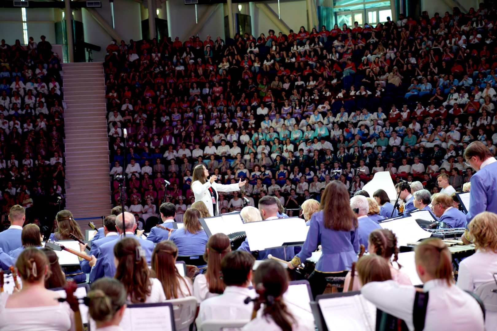 Центральным и глубоко символичным событием Проекта стал традиционный Гала-концерт сводного хора и сводного оркестра из всех коллективов - участников, который состоялся в Амфитеатре ВДЦ "Орлёнок". (Новый Амфитеатр в ВДЦ «Орлёнок» - это современное высокотехнологичное сооружение на 1500 мест с огромным панорамным экраном на заднике просторной сцены, мощными софитами и прекрасной акустикой).