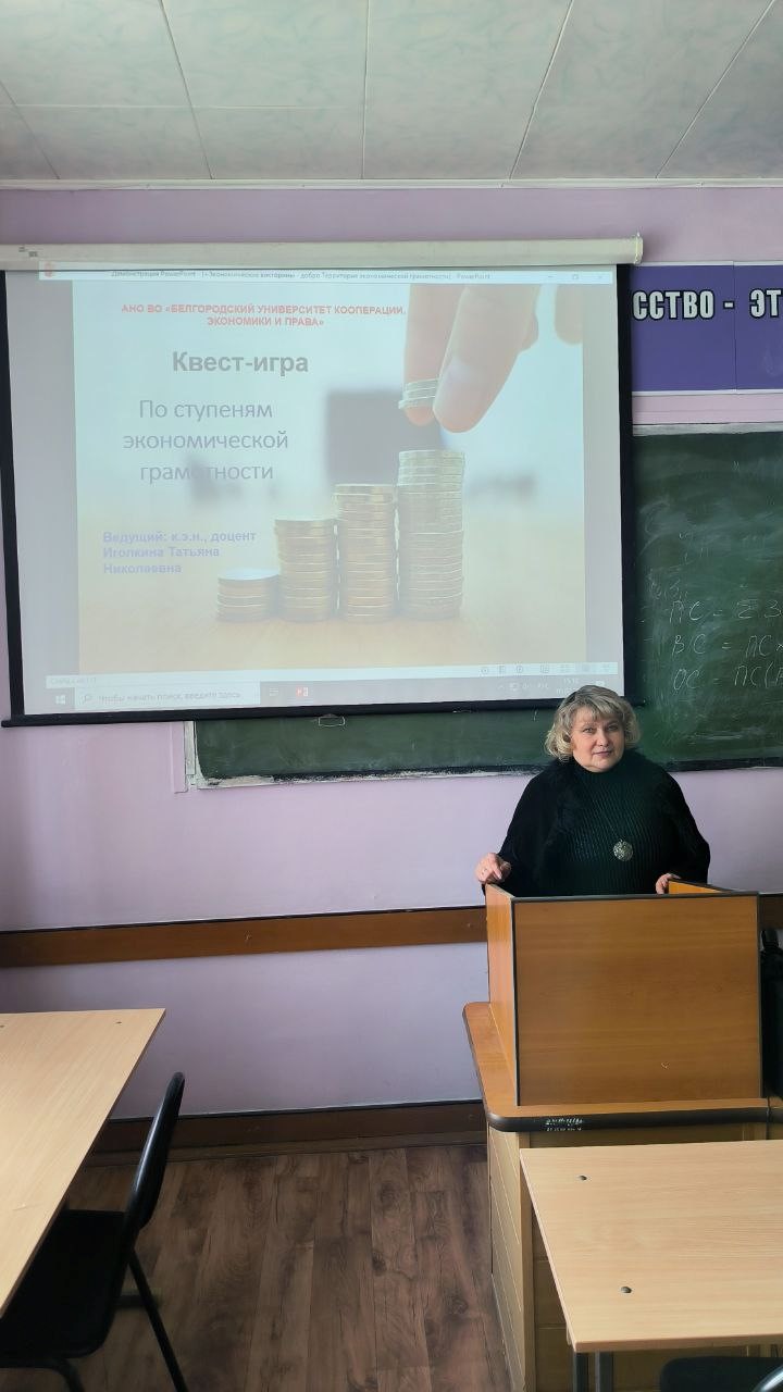 12 февраля 2026 года по согласованию с Национальным и Региональным координаторами САШ ЮНЕСКО в РФ и кафедрой ЮНЕСКО Белгородского университета кооперации, экономики и права кафедрой экономики была организована квест-игра «По ступеням экономической грамотности». Мероприятие было подготовлено заведующим кафедры экономики Р.В. Кононенко, доцентом Т.Н. Иголкиной.