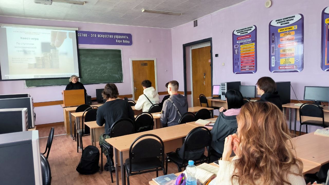 В квест-игре «По ступеням экономической грамотности» были задействованы студенты академических групп ОДЛ-241, ОДЛ-252с факультета среднего профессионального образования №1. Ведущим игры стала к.э.н., доцент кафедры экономики Иголкина Татьяна Николаевна.