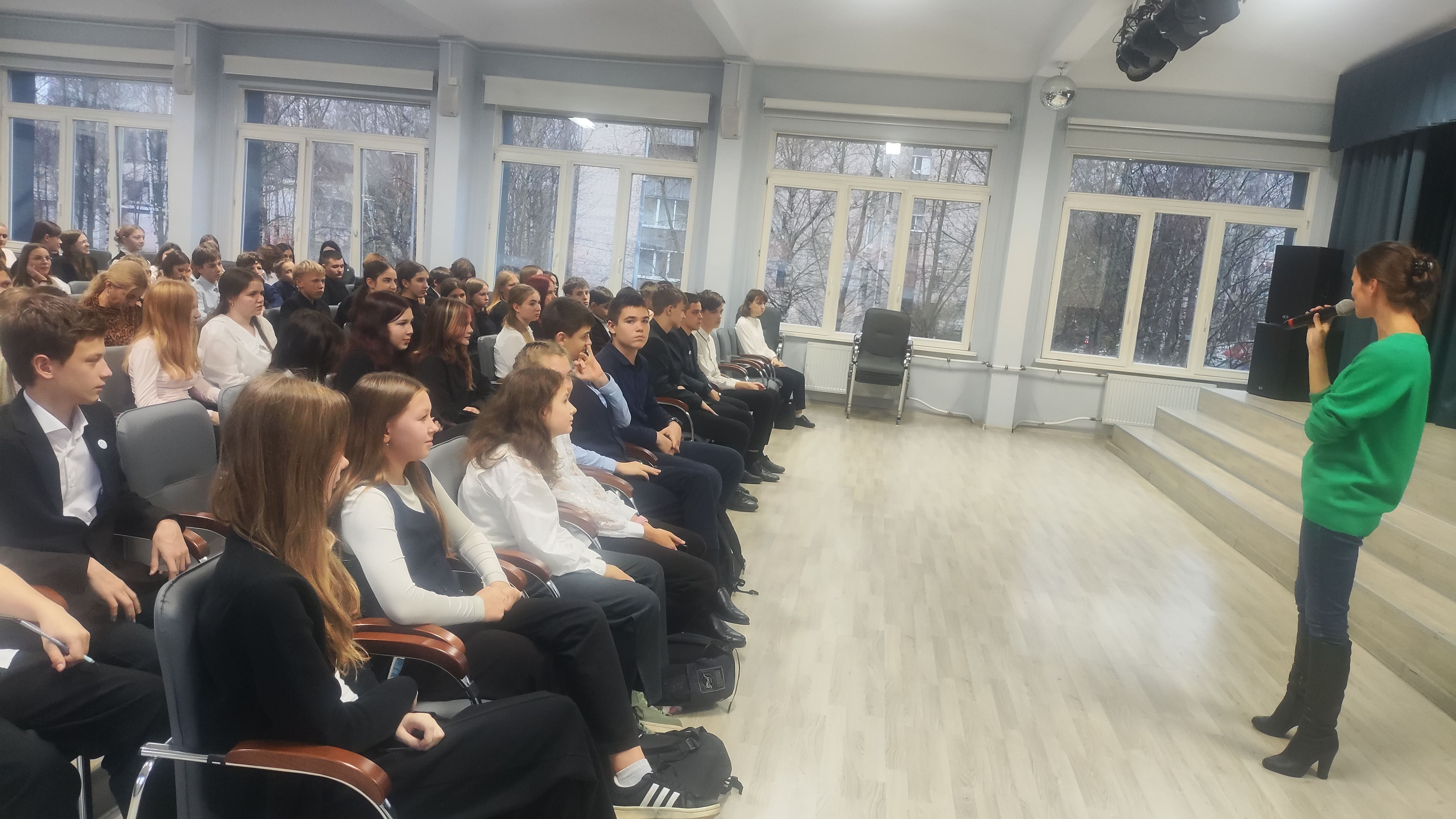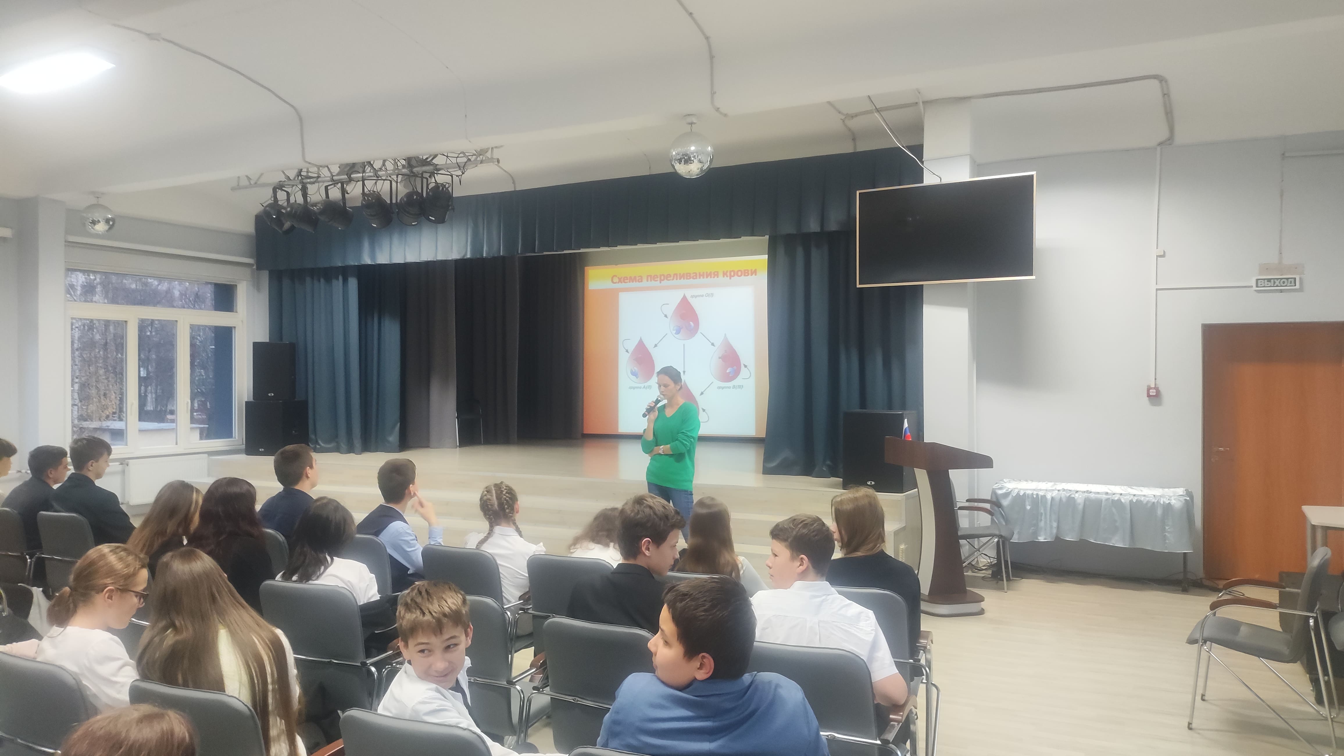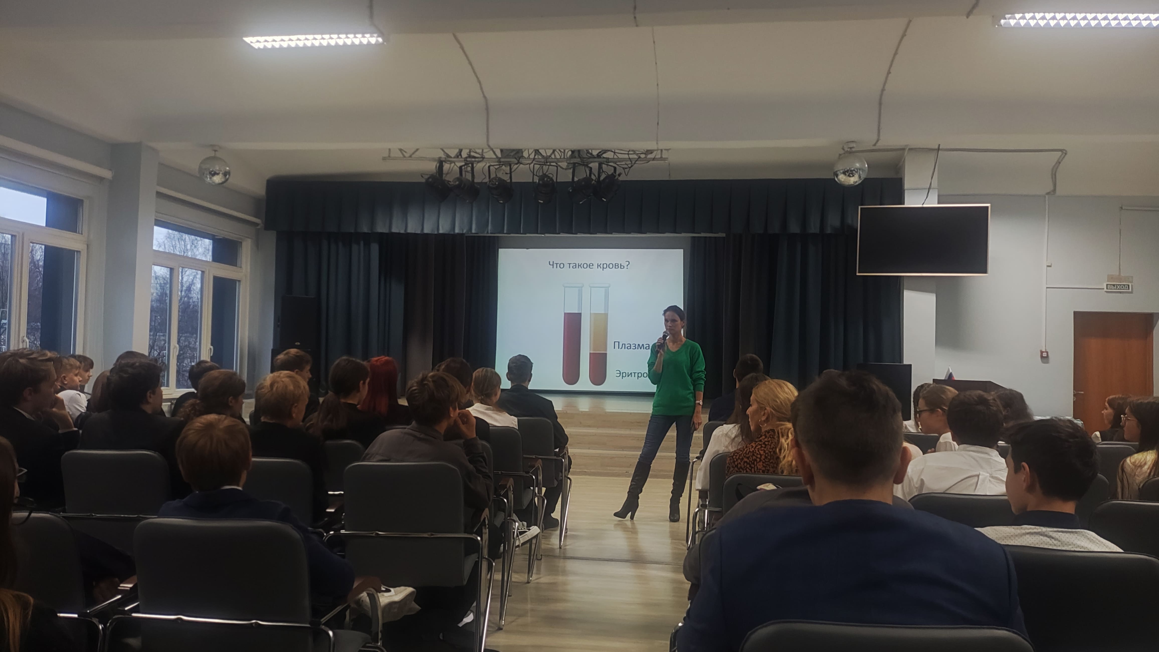 На встрече бывшая выпускница лицея Скворцова Е.А. рассказала ученикам об науке гематологии, особенностях крови человека и о специфике своей работы на станции переливании крови, методах и способах которые используют врачи станции в повседневной работе.