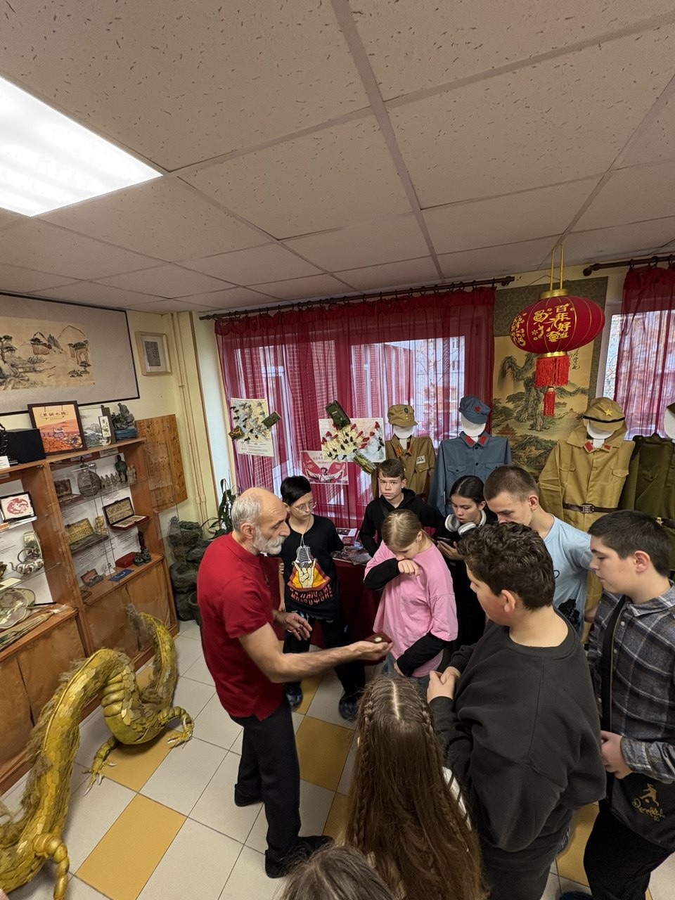 Ученики ГБОУ СОШ N290, Ассоциированной школы ЮНЕСКО, в сопровождении педагогов Ли Юлии Владимировны и Коугия Елены Николаевны посетили музей "Китайская шкатулка" в школе №574 Невского района Санкт-Петербурга.