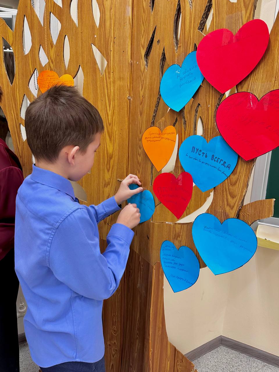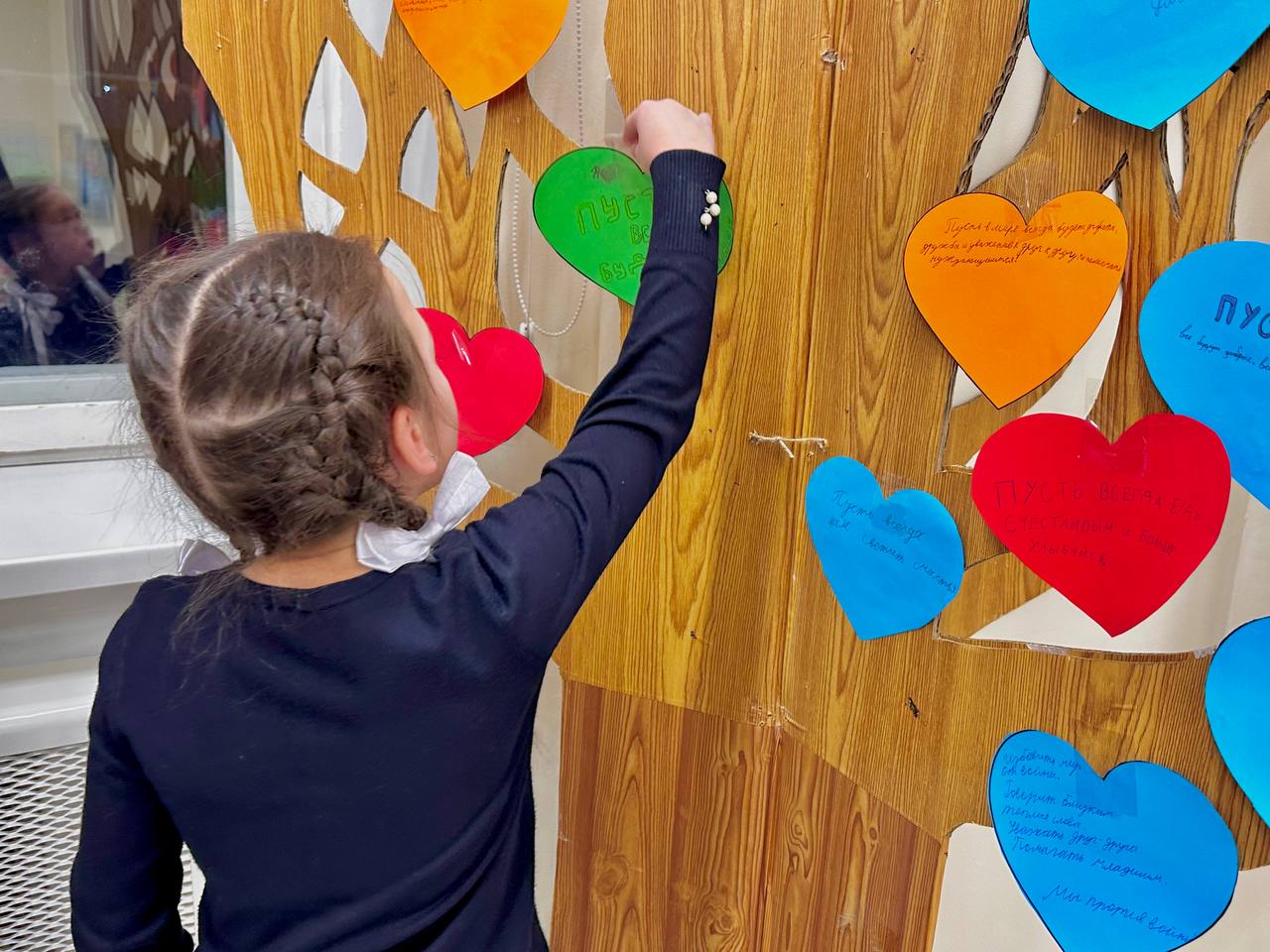 Эти детские сердца составили общее «Дерево доброты» — яркий символ солидарности поколений, единства целей и обязательств бережно хранить память о прошлом, развивать культуру мира и взаимоуважения.