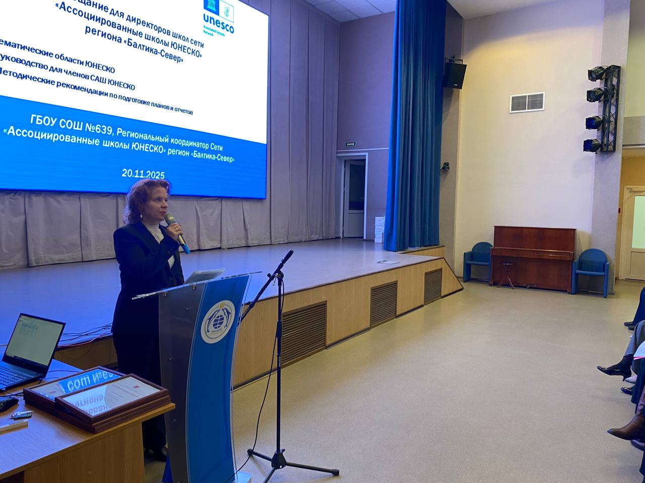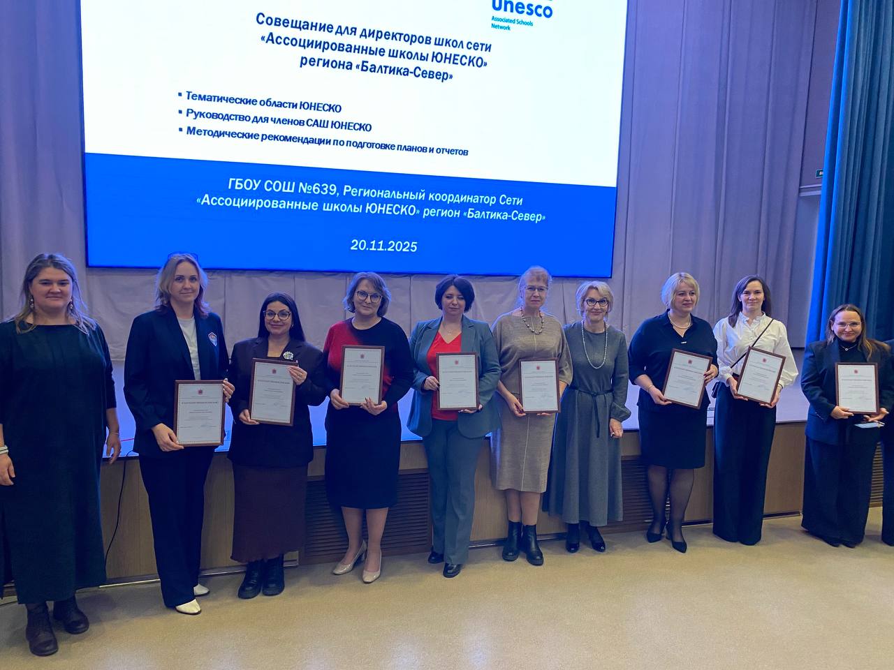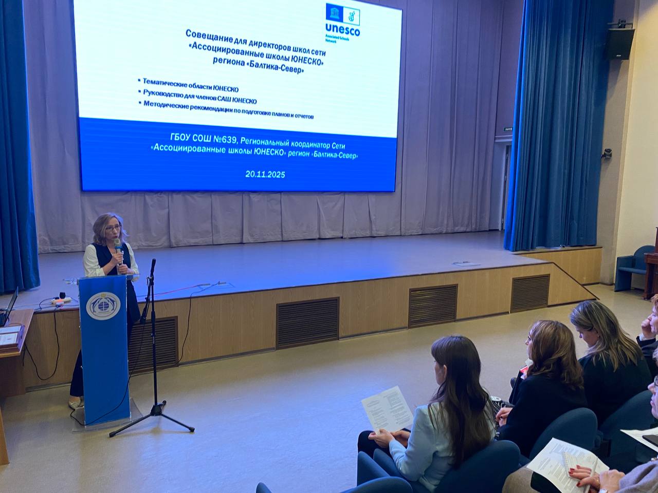 20 ноября 2025 года в 15:00 на базе ГБОУ школы № 639 с углубленным изучением иностранных языков Невского района Санкт-Петербурга (адрес: Санкт-Петербург, наб. реки Оккервиль, д. 10, литер А) состоялось рабочее совещание с руководителями образовательных организаций, задействованных в международном проекте «Ассоциированные школы ЮНЕСКО».