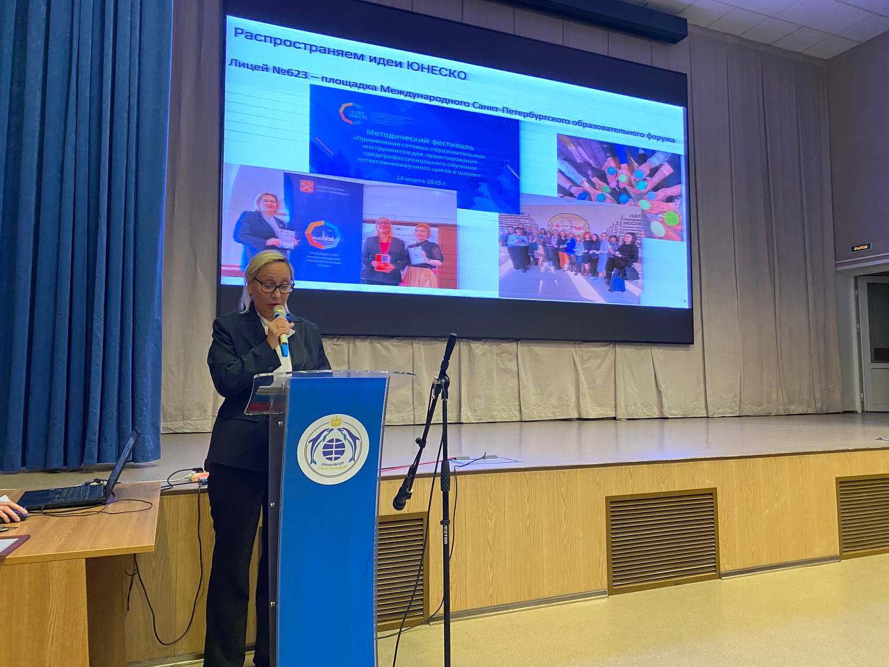 С докладом «Об итогах работы сети ассоциированных школ ЮНЕСКО в регионе «Балтика-Север» в 2025 году» выступила Крылова Ирина Вадимовна, директор ГБОУ школы № 639, региональный координатор САШ ЮНЕСКО «Балтика-Север».