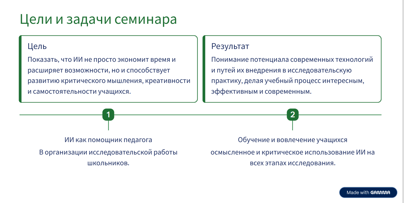 Семинар прошел продуктивно, открыв новые горизонты для внедрения современных технологий в процесс организации исследовательской работы школьников.