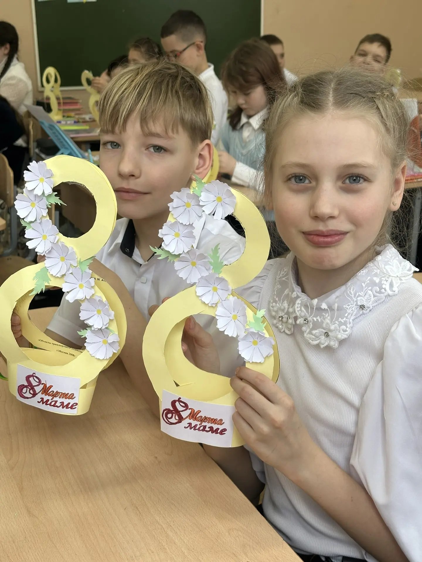 С самого утра 6 марта всех входящих в школьные корпуса встречала особая атмосфера: звучала приятная музыка, а в холлах царило оживление. Мальчишки и юноши дарили цветы и шарики, а самым оригинальным сюрпризом стал лототрон с предсказаниями! Каждый педагог мог вытянуть себе забавное и доброе пожелание на день, получив заряд отличного настроения. Во многих классах прошли тёплые поздравления для девочек. Ребята сделали оригинальные цветы своими руками, вложив в каждую работу частичку души и благодарности. Такой творческий подход не оставил равнодушными ни педагогов, ни родителей. Этот день ещё раз доказал, что настоящий праздник создаётся не подарками, а вниманием, заботой и желанием порадовать близких. На переменах ученики исполняли концертные номера: песни о весне, танцевали.
