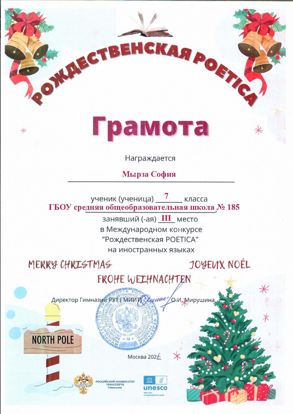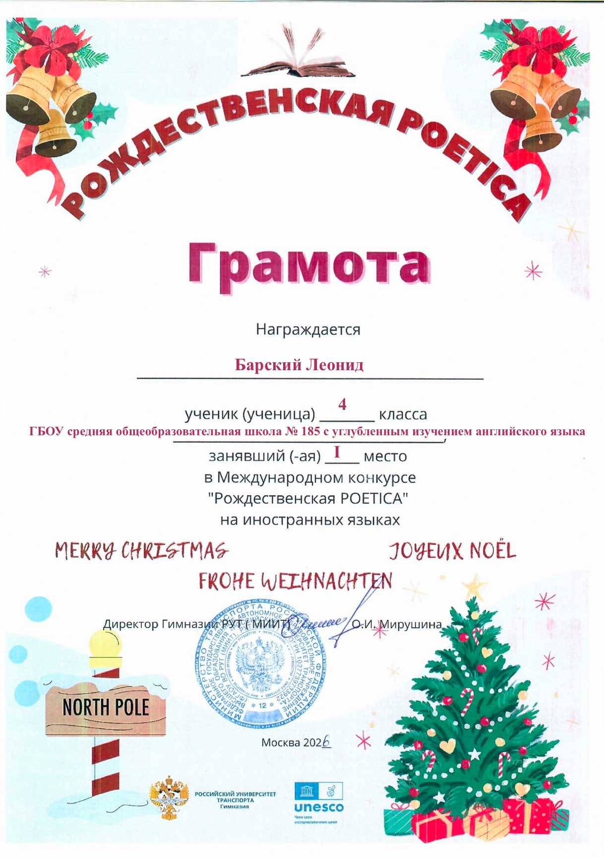 Международный ежегодный литературный конкурс чтецов на иностранных языках «Рождественская Poetica 2025». Мероприятие стало ярким завершением учебного полугодия и подарило участникам и зрителям атмосферу праздничного диалога культур.