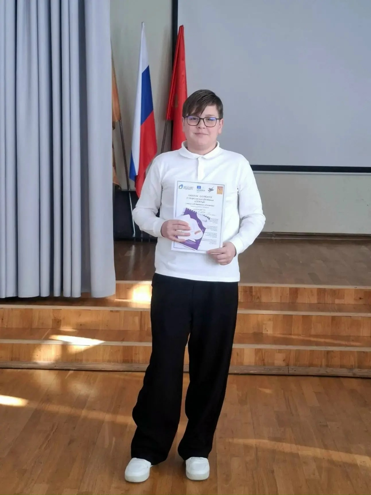 Пятеро начинающих авторов нашей школы получили возможность публично исполнить произведения собственного сочинения перед доброжелательными зрителями и авторитетным жюри. Юные поэты проявили свои художественные и артистические дарования, способность чувствовать слово и умение видеть прекрасное в самых обычных вещах. Смело, но каждый раз с большим доверием, раскрывали ребята свой внутренний мир, показывали глубину своих переживаний, силу своей любви, искренность своей дружбы, детскую наивность и вполне осмысленную взрослость.