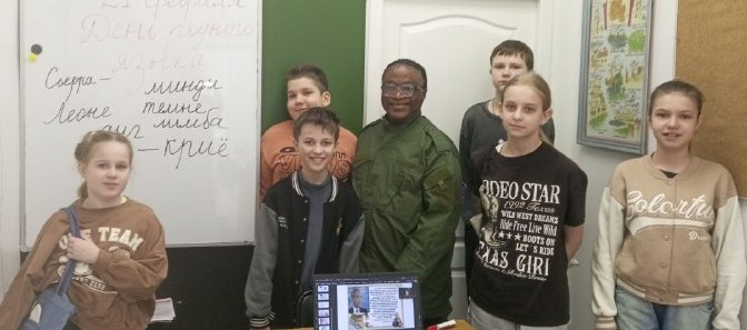 Учащиеся группы RO отправились в лингвистическое путешествие вместе с преподавателем Фрэнсисом. Он рассказал о своей родине — Сьерра-Леоне. Ребята узнали, что в этой стране соседствуют десятки языков, многие из которых существуют только в устной форме. Например, язык «минди» (родной язык преподавателя) не имеет письменности, а роль лингва-франка выполняет язык крие. Государственным же языком является английский. В ходе беседы студенты обсудили тревожную статистику ЮНЕСКО: каждый месяц в мире исчезает два языка, и роль подобных организаций в их охране крайне важна.