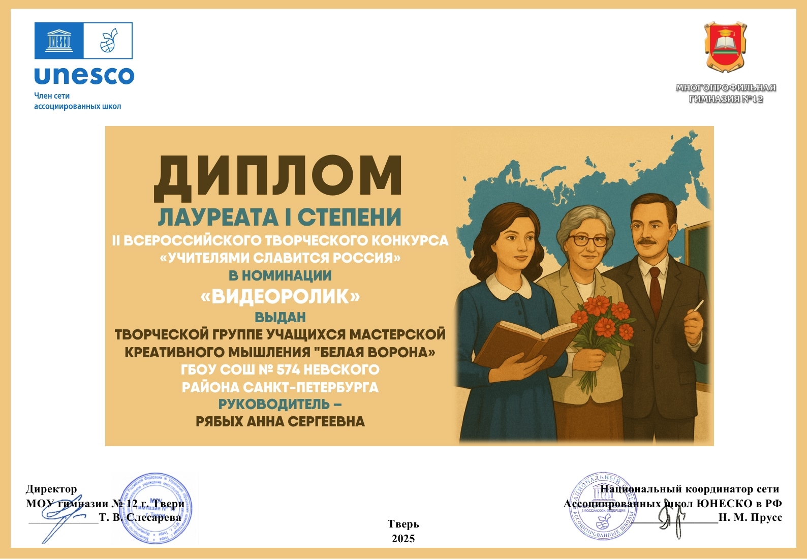 Наша школа участвовала а номинации «Видеоролик». Нужно было создать короткий видеоролик (до 3 минут), посвящённый теме «Учителями славится Россия». Возможные жанры: мини-документальный фильм, интервью, социальный ролик, художественное видео.