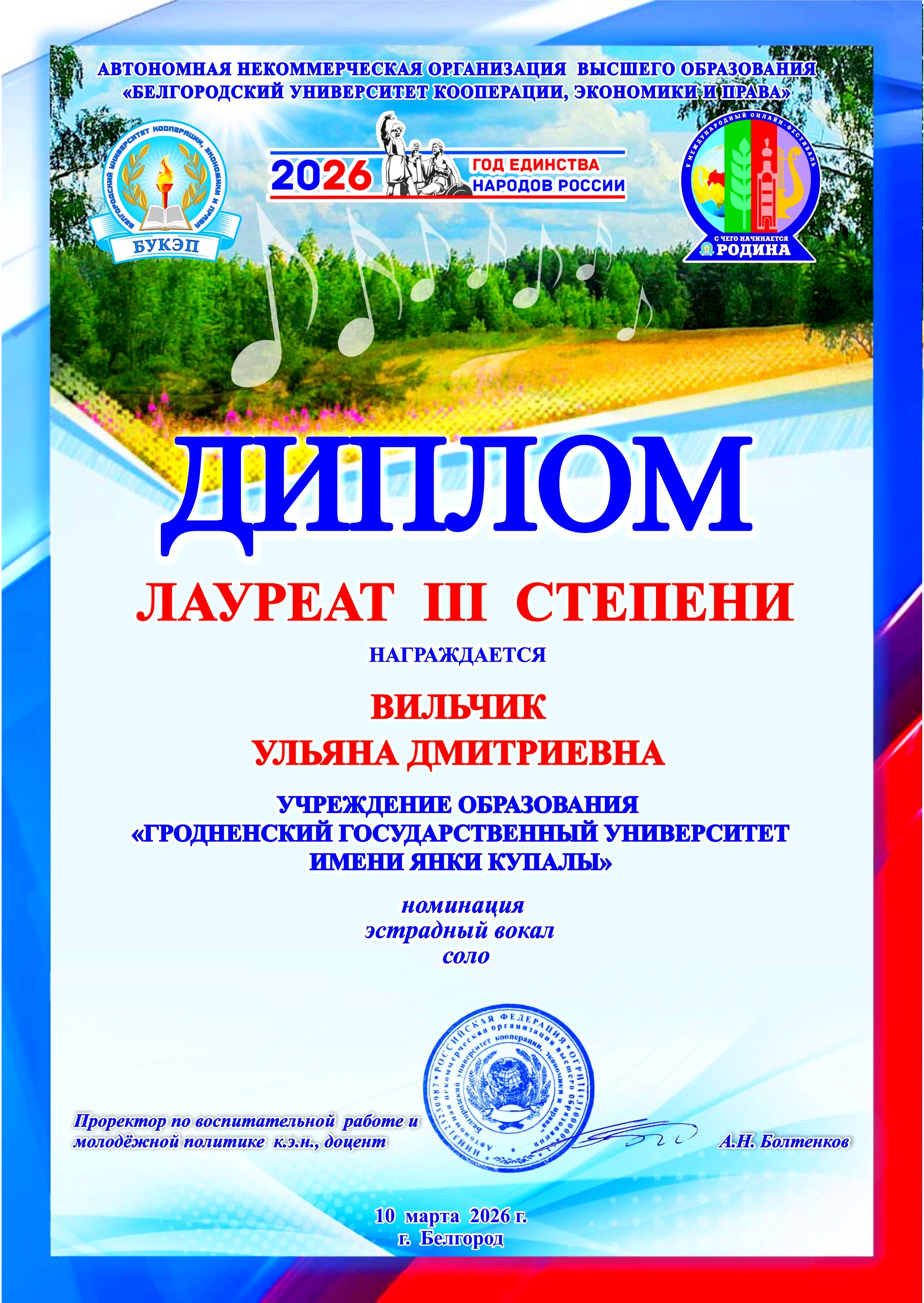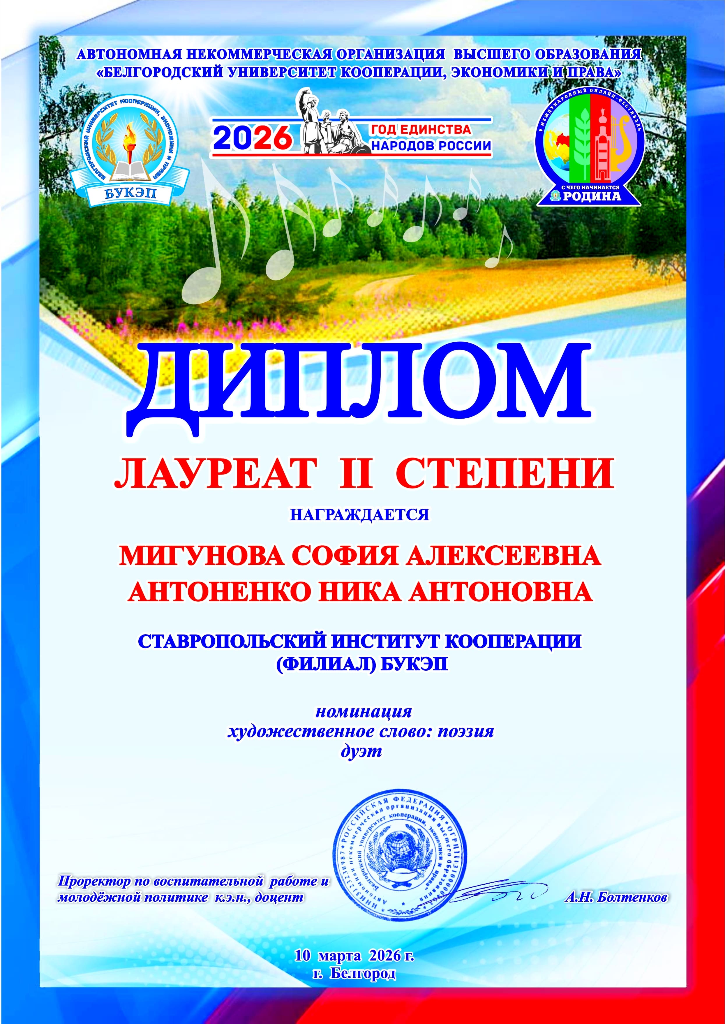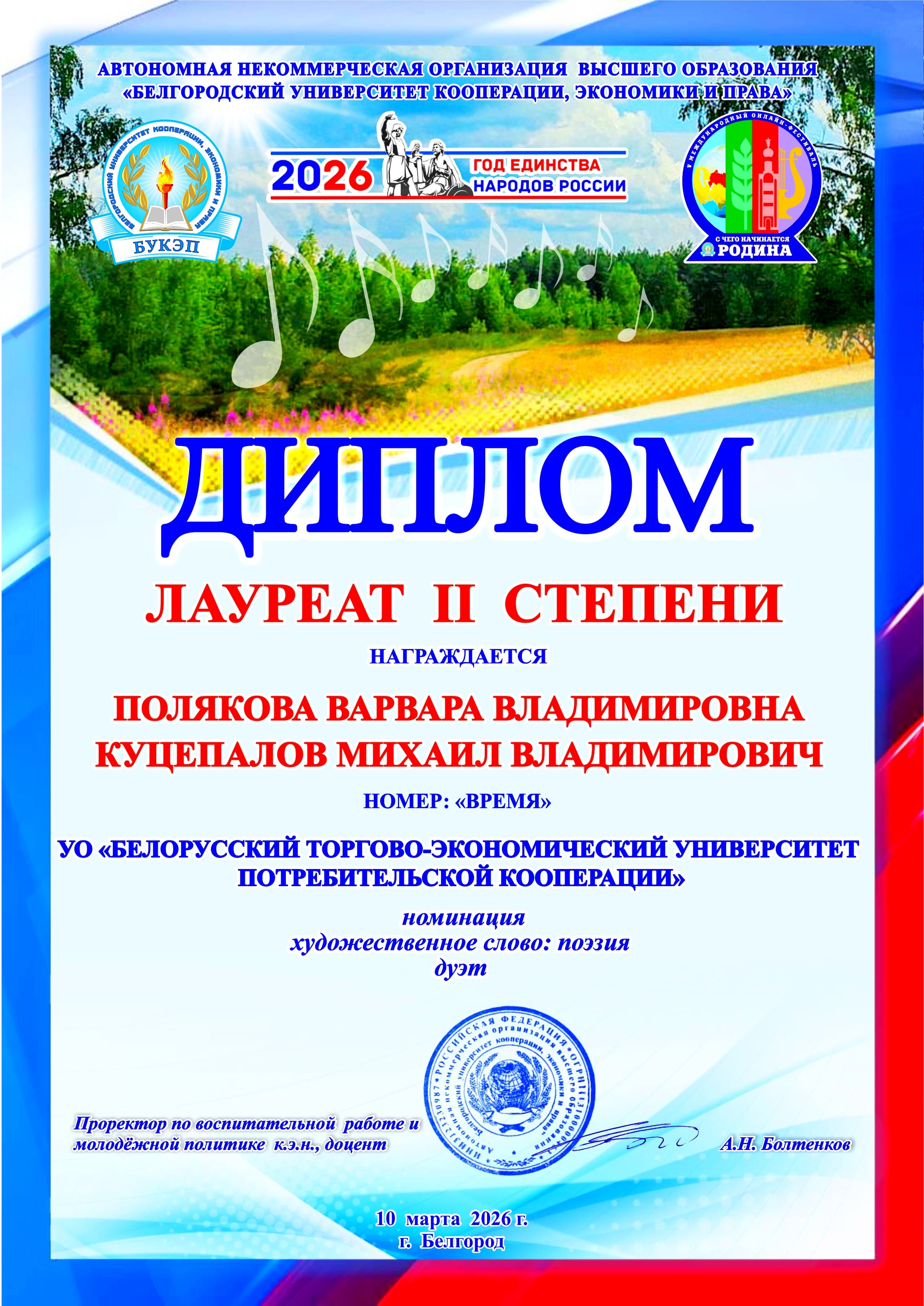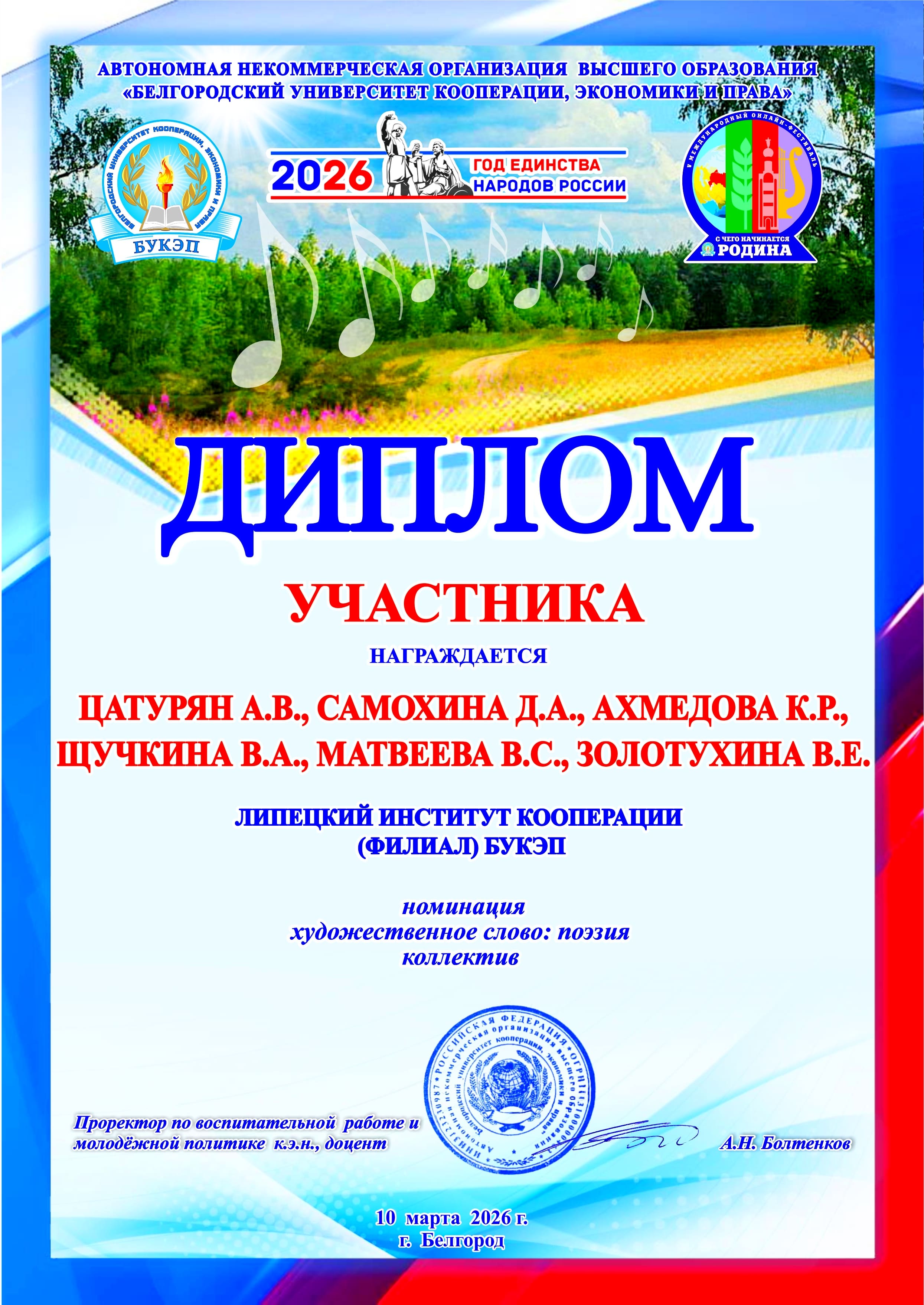 10 марта 2026 г были объявлены итоги V Международного фестиваля «С чего начинается Родина» который проходил со 02.02.2026 по 09.03.2026 г.