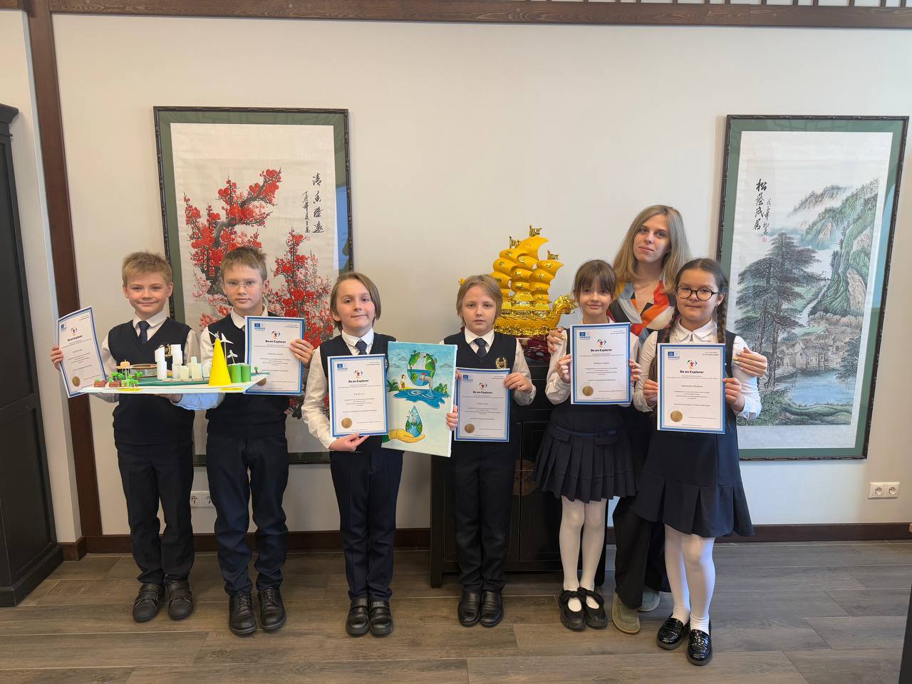 Ученики 3В класса Арсений и Глеб (совместная поделка) – награда за исследования в области устойчивого развития в рамках продвижения чистой энергии